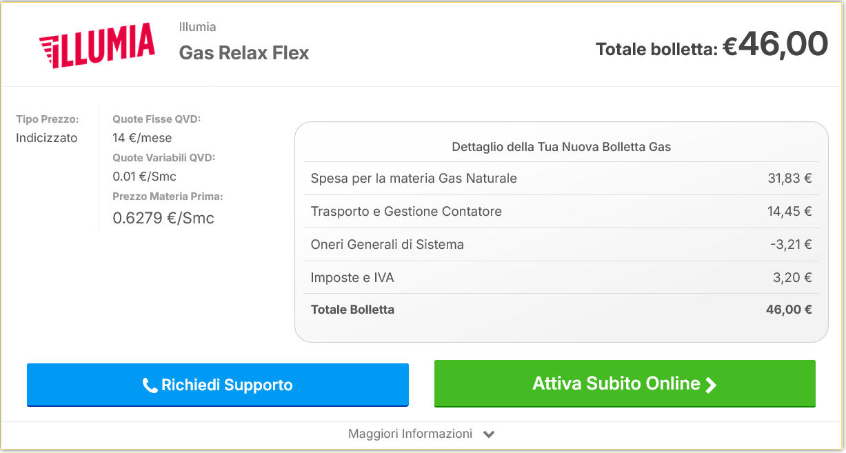 Per il gas, invece, si citano le seguenti offerte a prezzo indicizzato: